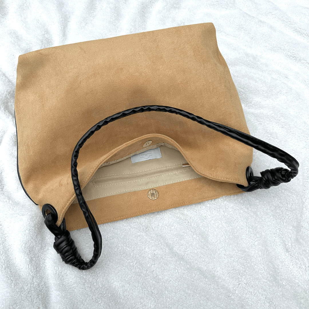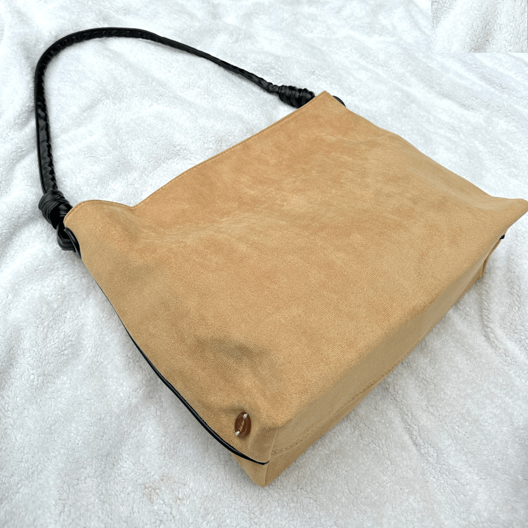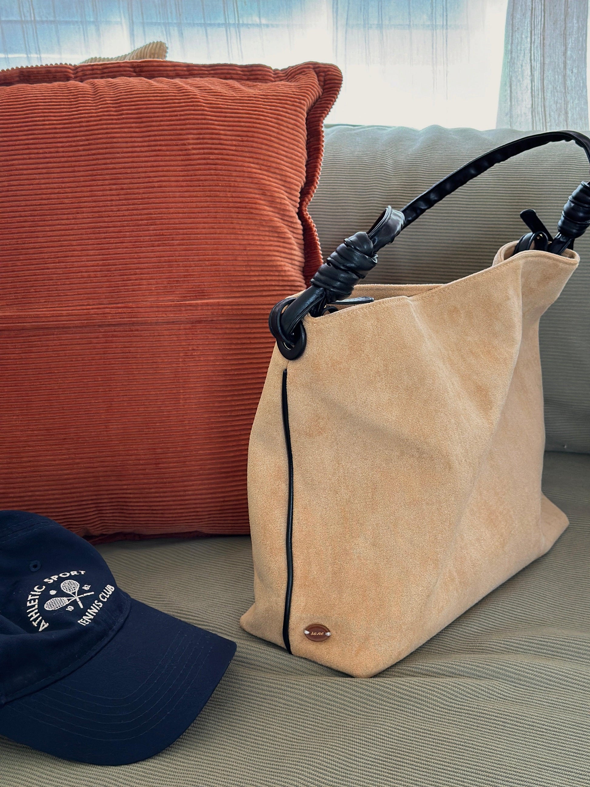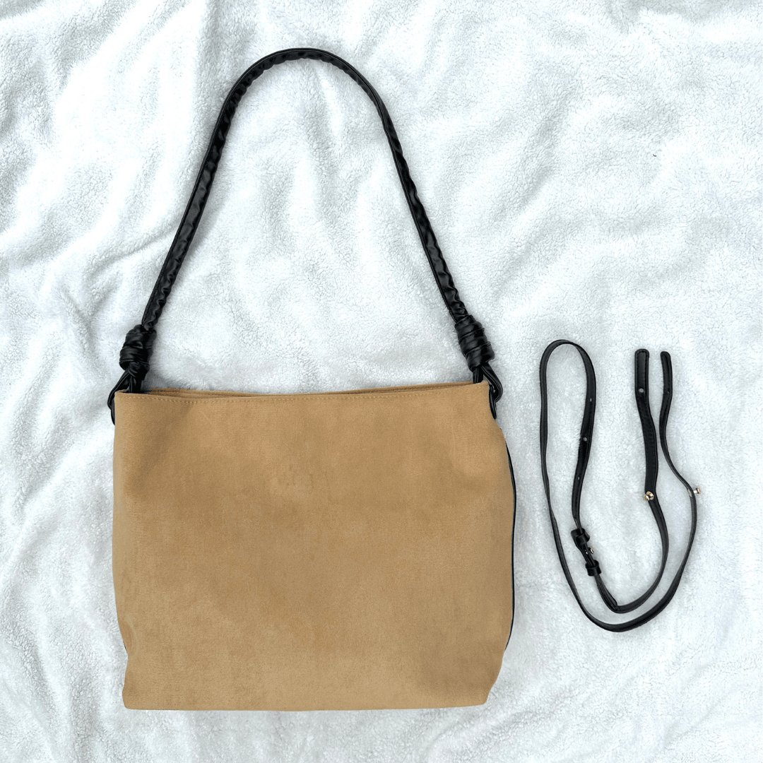 The Nomad Tote Bag is a versatile and stylish accessory, perfect for your everyday use. Crafted from faux suede in a timeless camel color, this bag features detachable straps, to be worn as a shoulder bag or crossbody. Its spacious interior includes one inner zip compartment, offering plenty of room for your essentials, like a 13-inch laptop, tablet, wallet, keys, and more. Ideal for both leisure and formal occasions, this bag combines practicality with chic elegance.